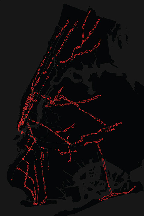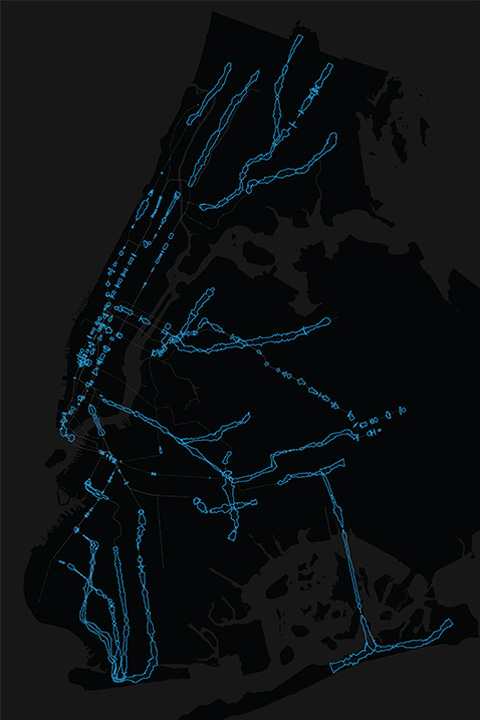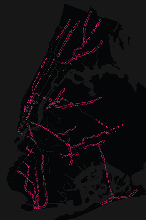 Over a period of two weeks in fall 2015, the Subspotting project logged the cell phone reception of New York City’s four major phone carriers along all 21 lines, 469 stations, and 660 miles of track covered by the MTA.